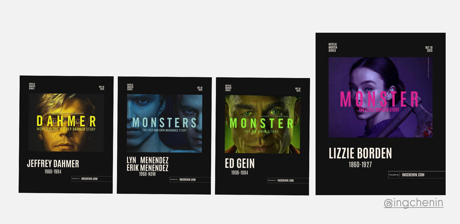 Netflix《怪物》(Monster)系列自 2022 年推出以來,以真實案件為基礎重現多位美國連環殺人犯的故事。首季《食人魔達默》(DAHMER — Monster: The Jeffrey Dahmer Story)推出後,不僅引發全球關注,也讓台灣觀眾對真實犯罪與紀錄片類型產生更高興趣。隨後推出第二季《怪物:梅內德斯弒親兄弟檔》(Monsters: The Erik and Lyle Menendez Story)與第三季《艾德・蓋恩的故事》(Monster: The Ed Gein Story)。Netflix官方近期也正式宣布,將開始製作第四季《麗茲波頓的故事》( Lizzie Borden,暫譯),將持續延伸「怪物宇宙」。